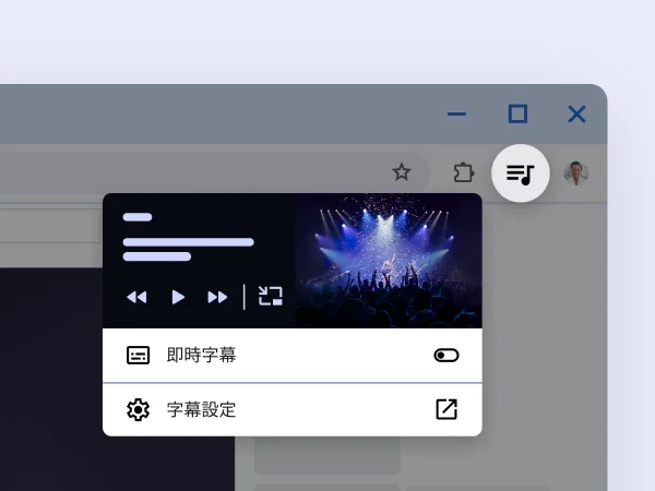 Chrome 支援螢幕閱讀器和放大鏡,並提供整頁縮放、高對比色彩、AI 圖像描述、即時字幕、鍵盤瀏覽等功能,讓你以適合自己的形式輕鬆瀏覽網頁。